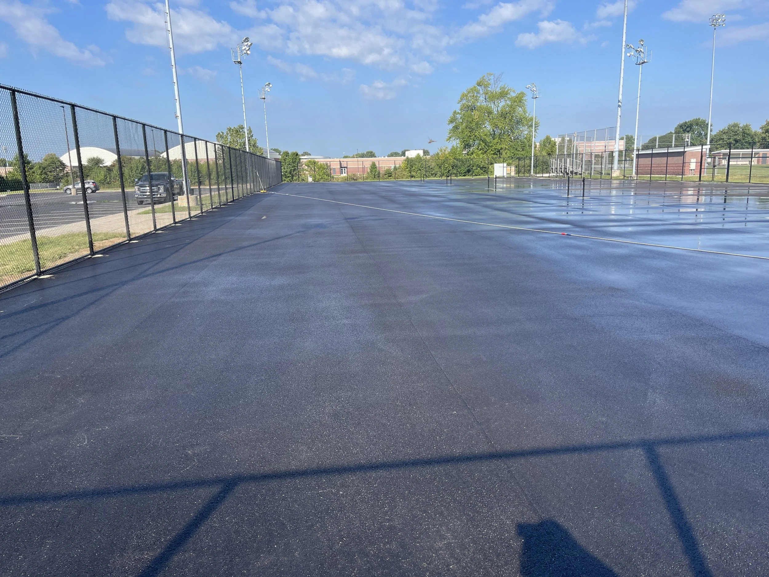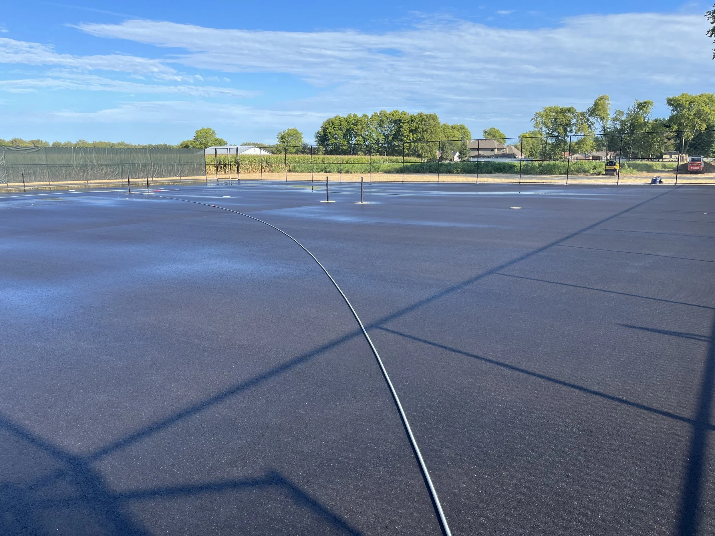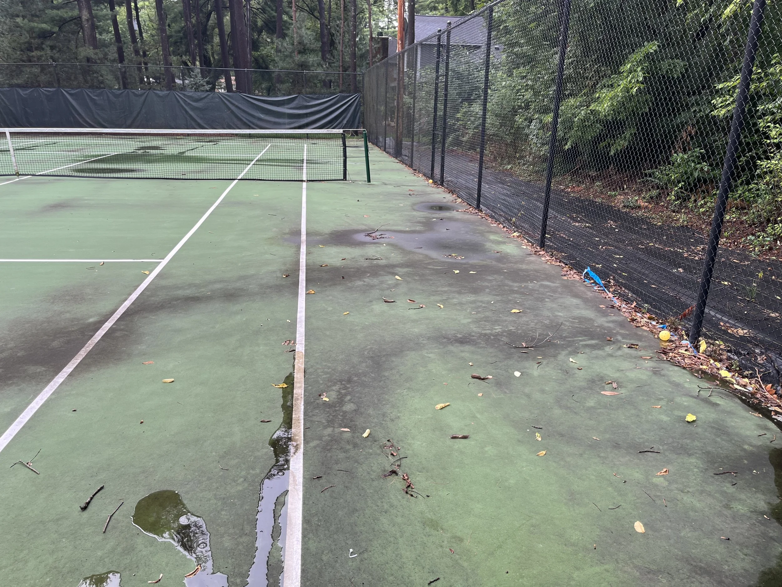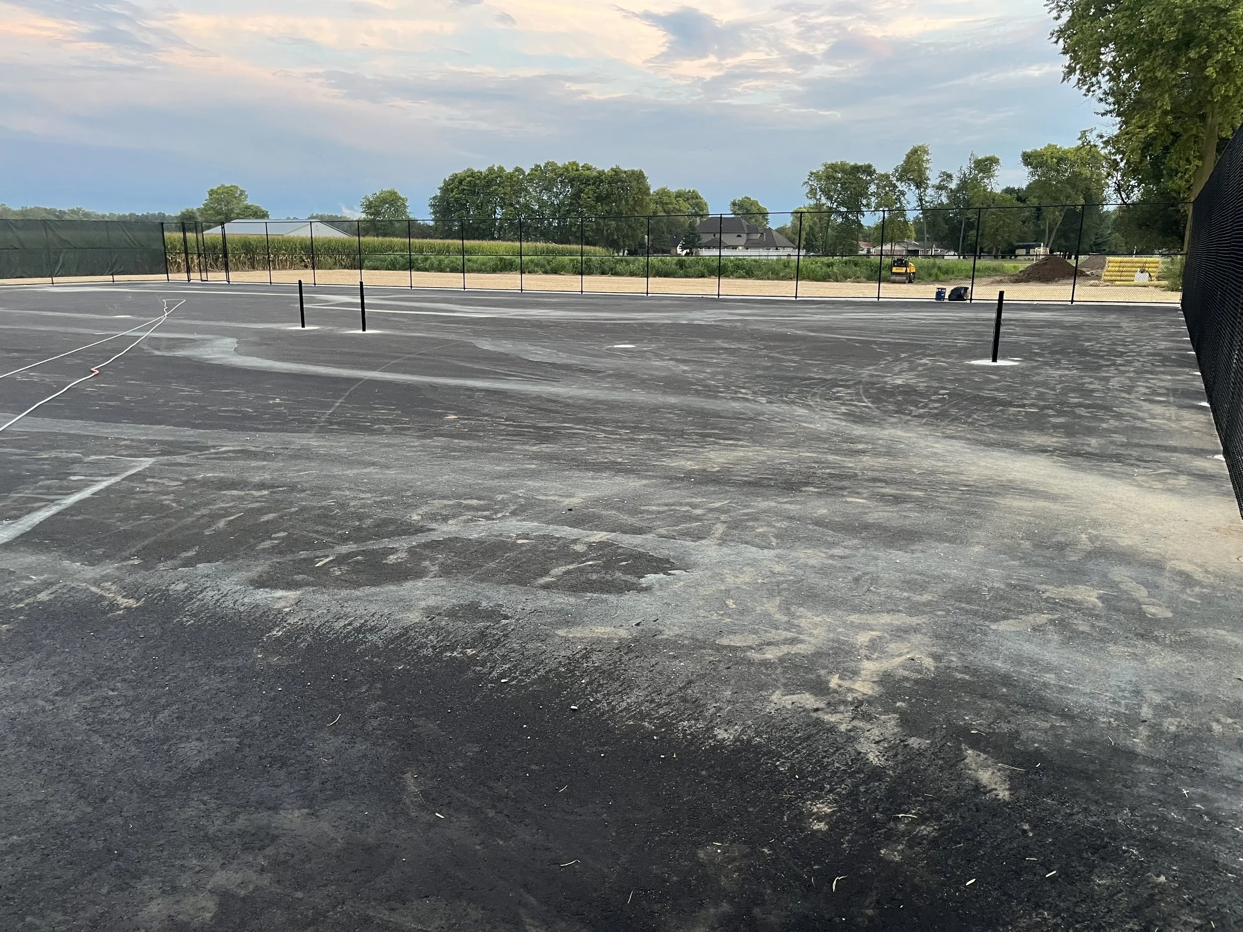 Cleaning courts prior to a new surface being applied.