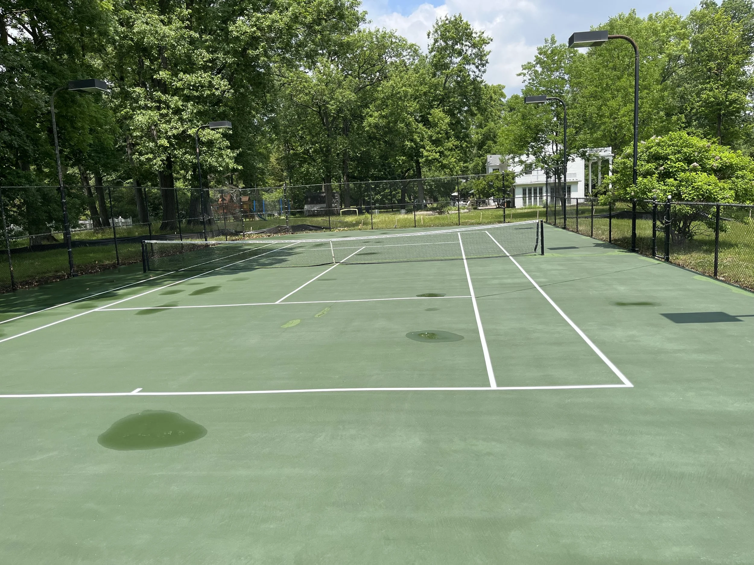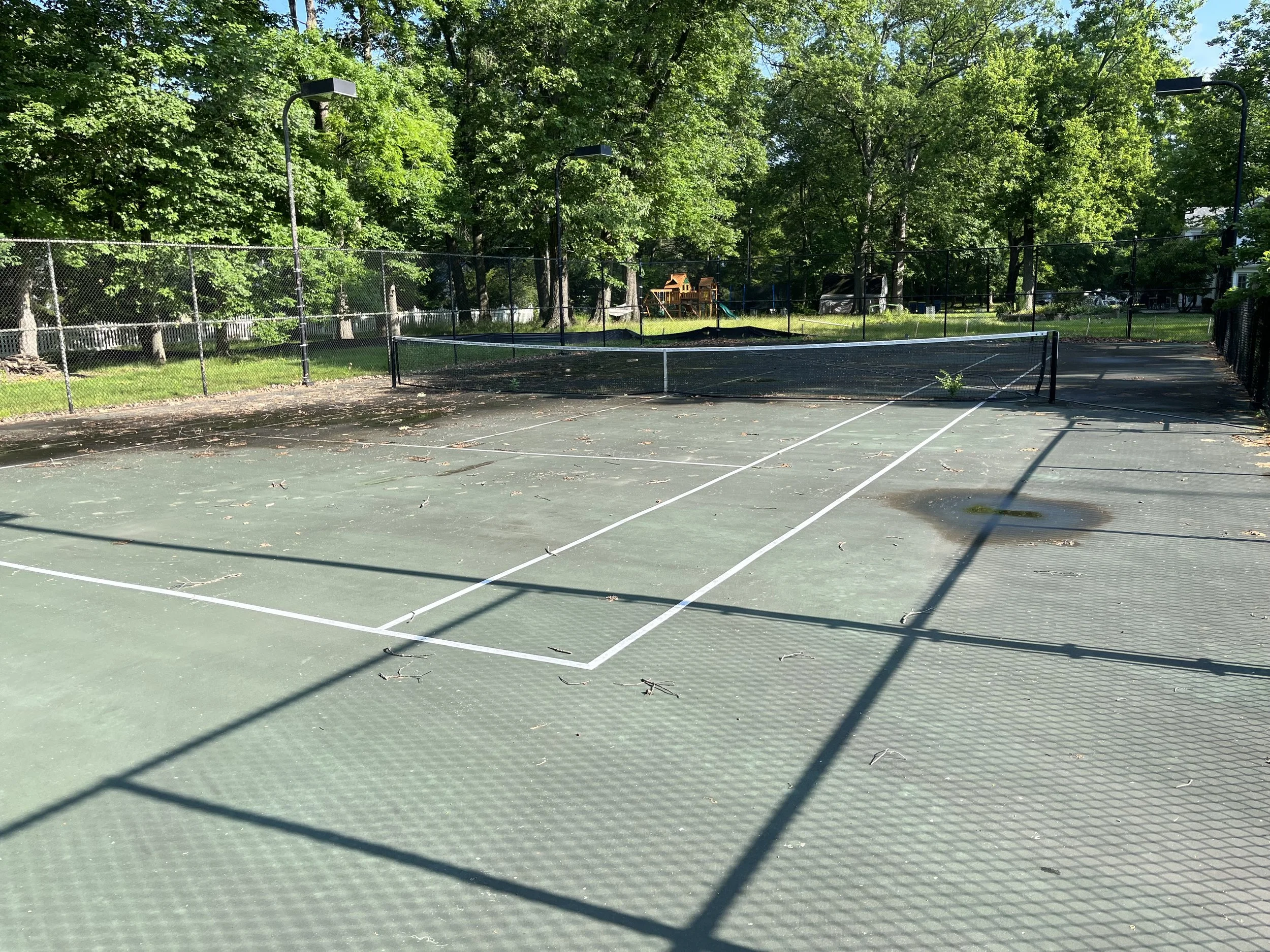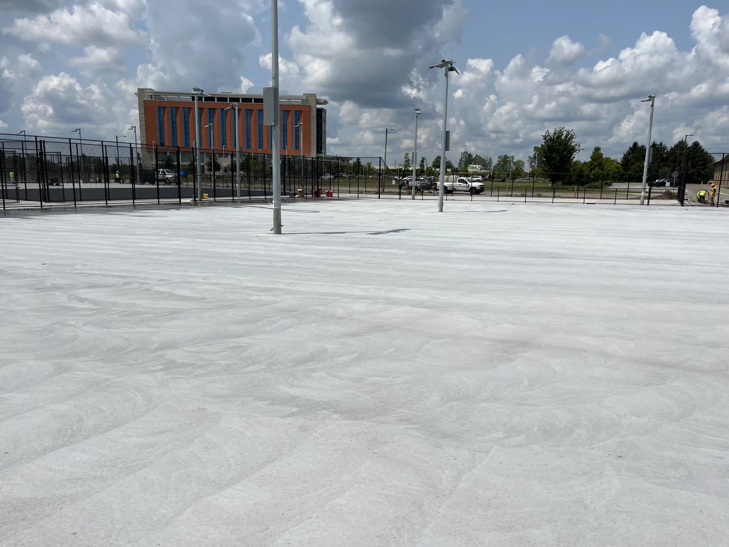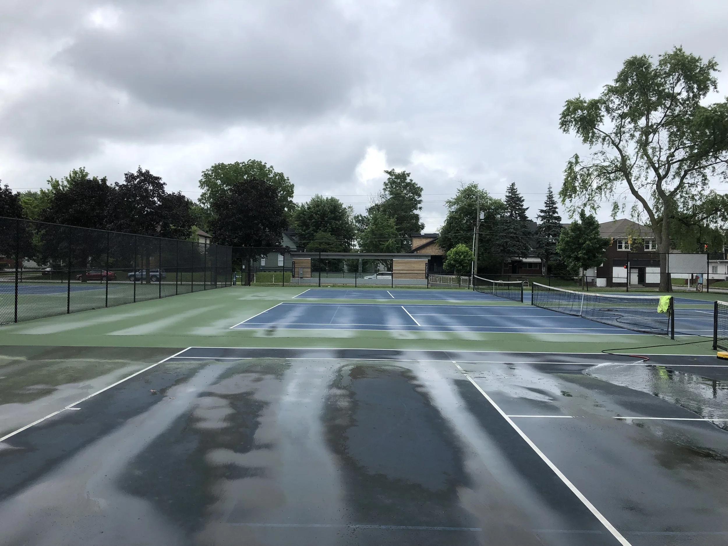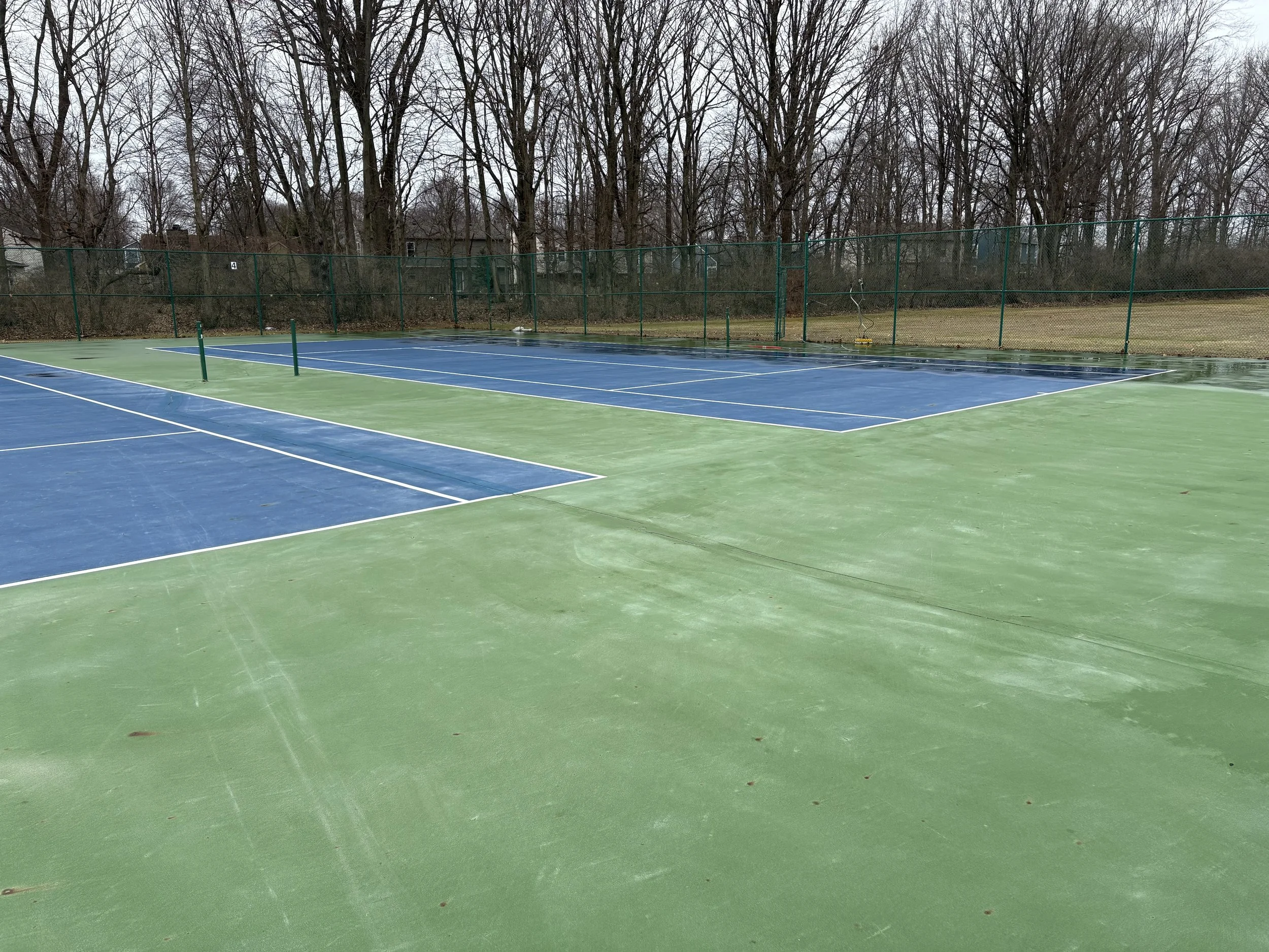 Cleaning courts prior to a new surface being applied.
