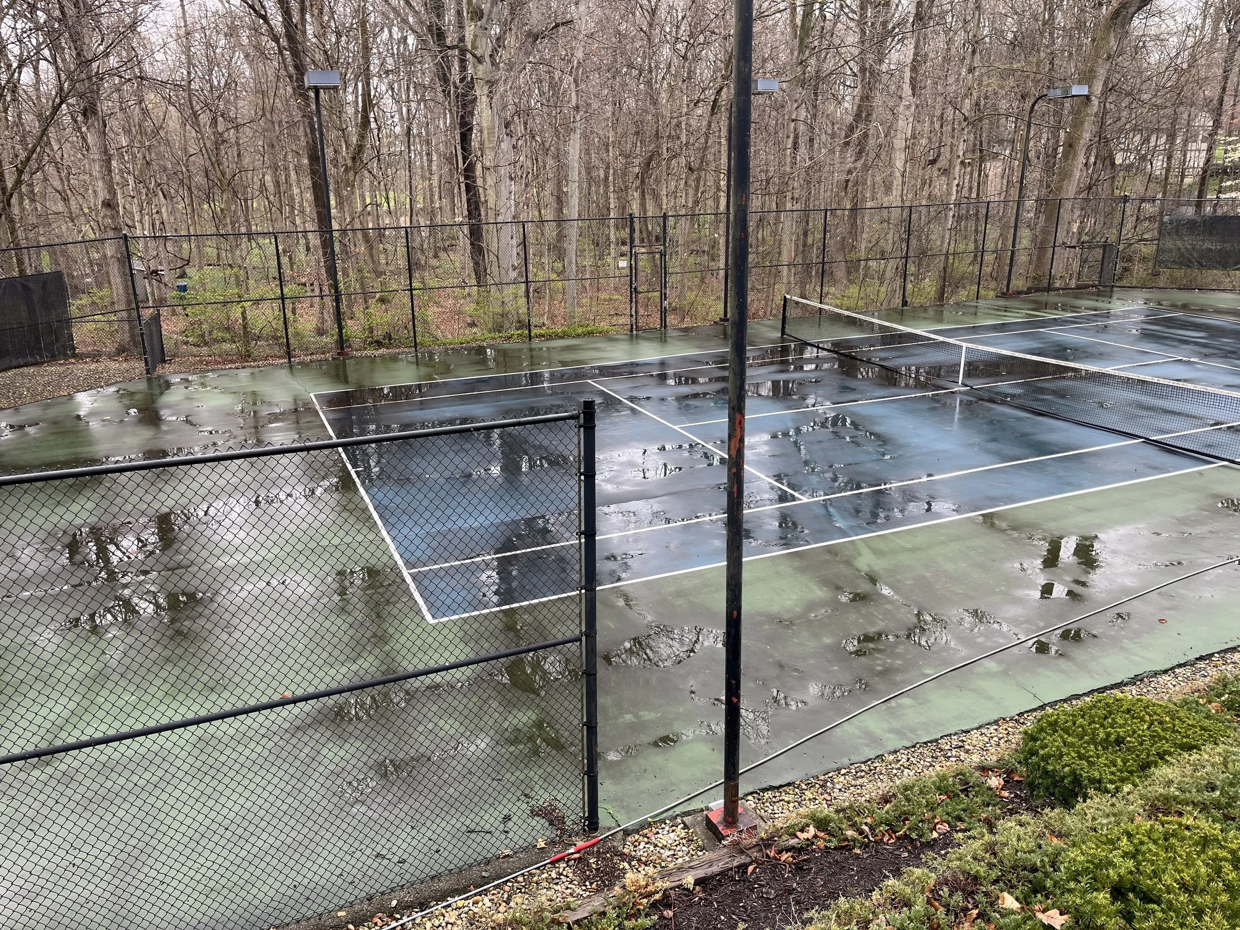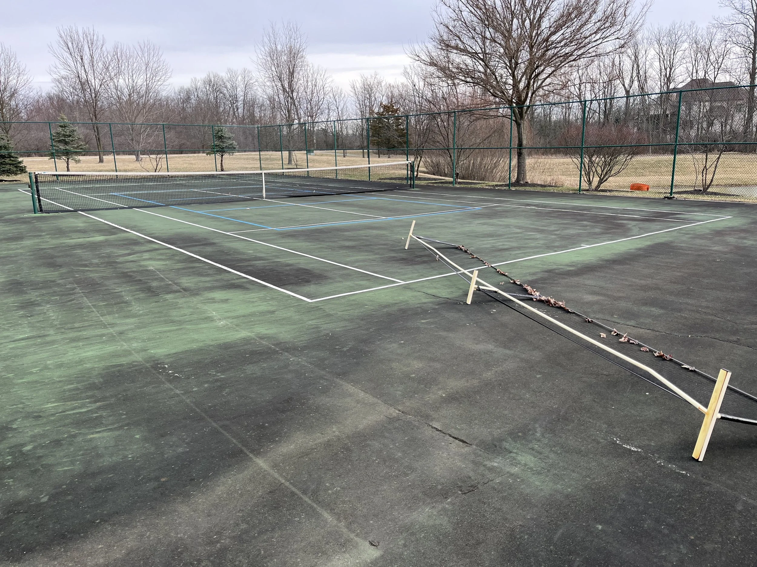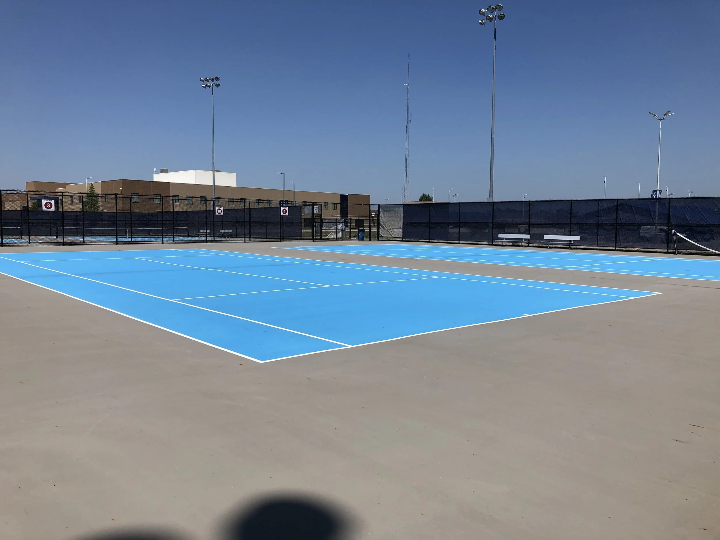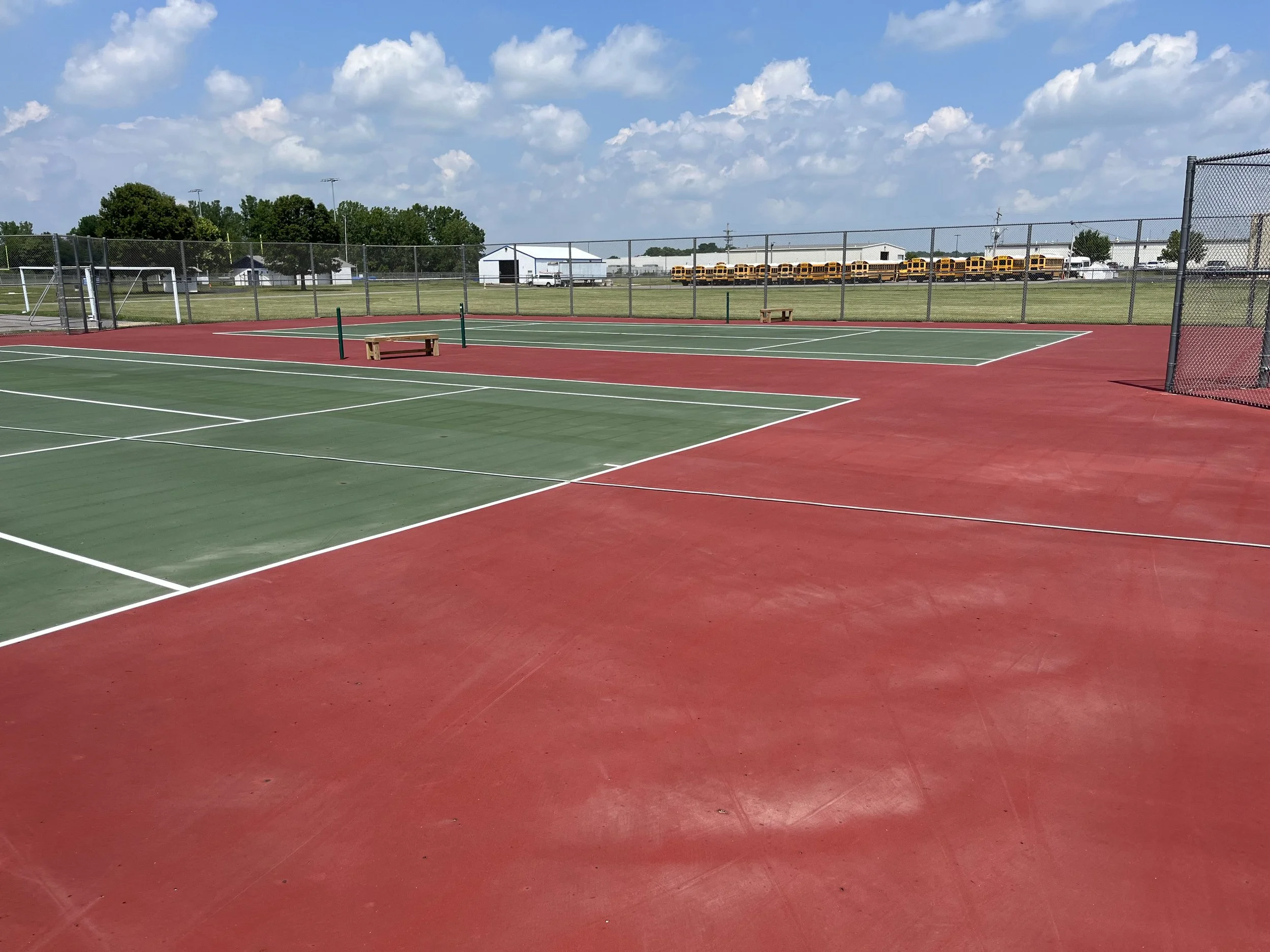 Cleaning courts prior to a new surface being applied.