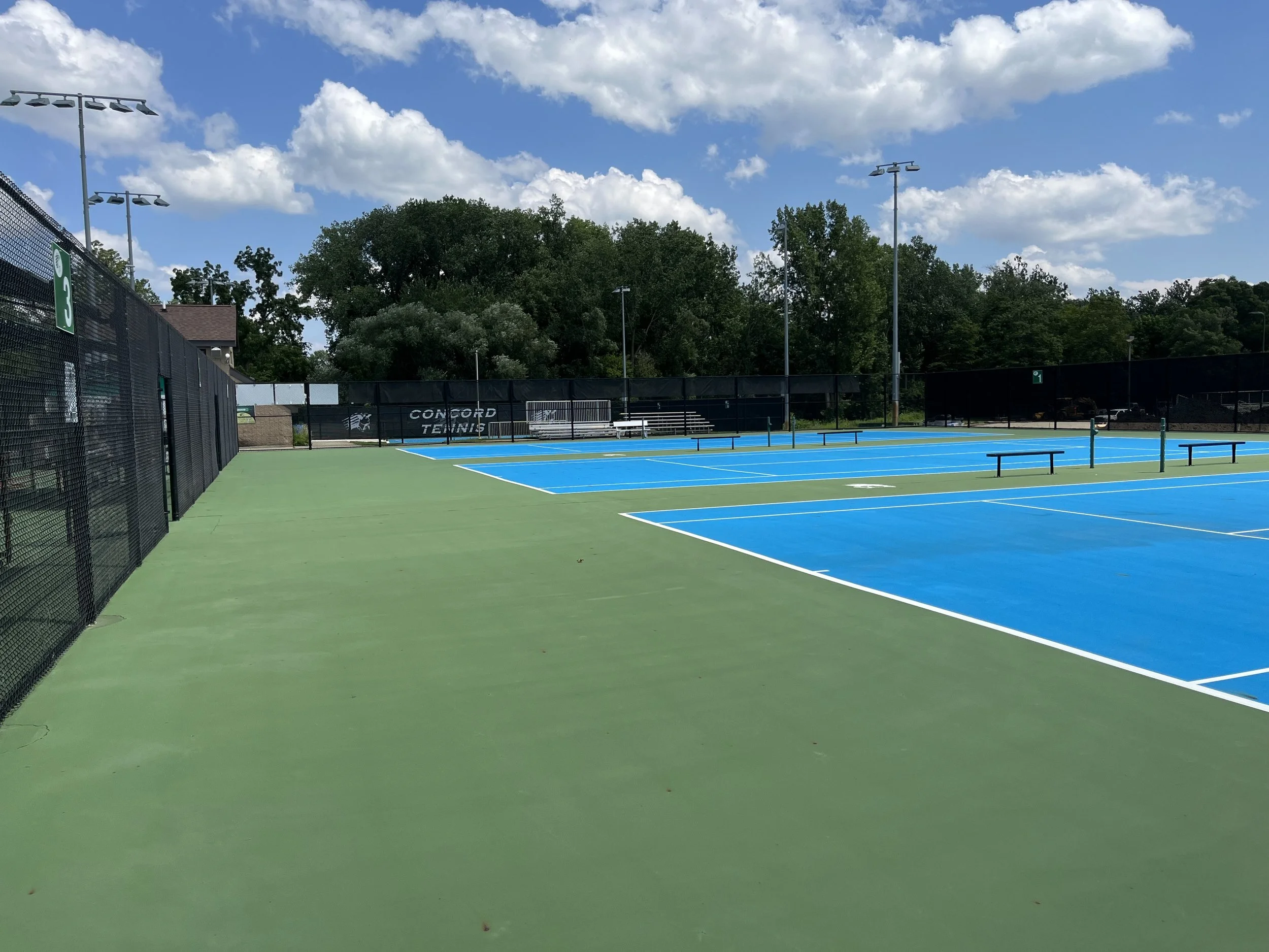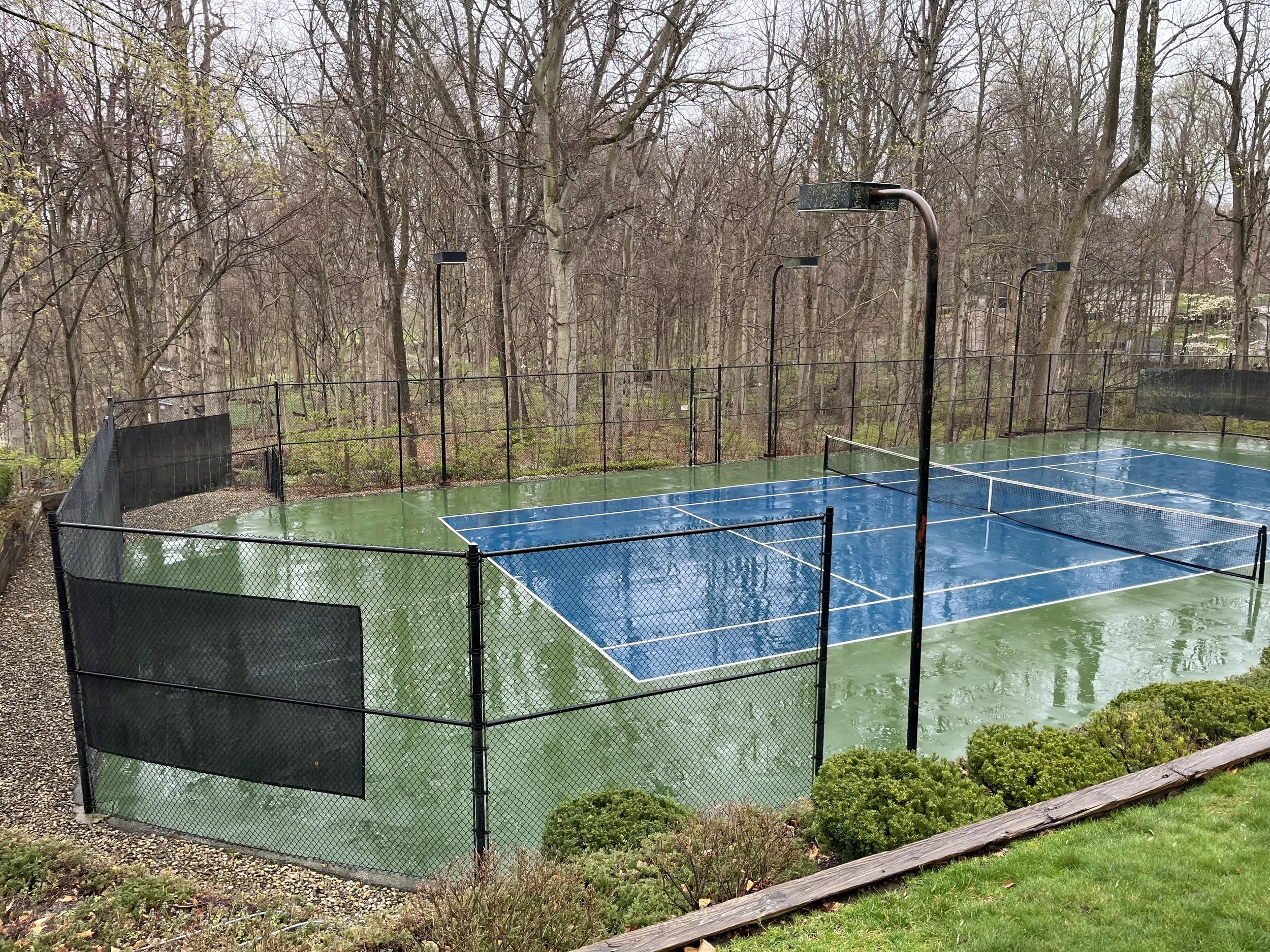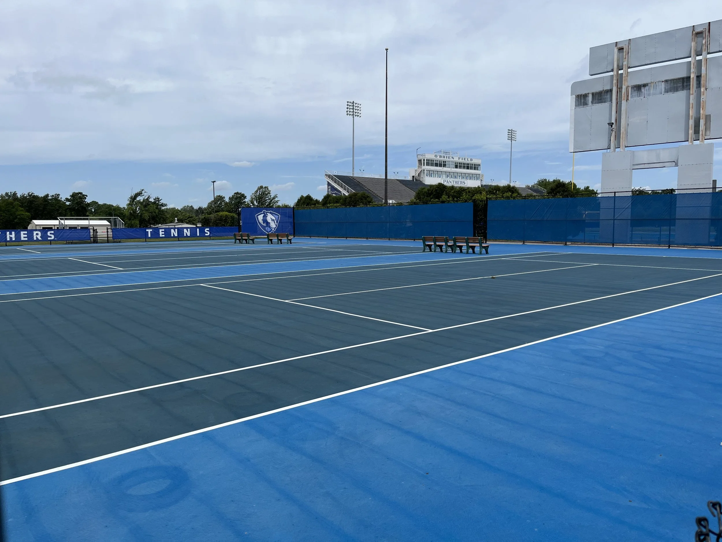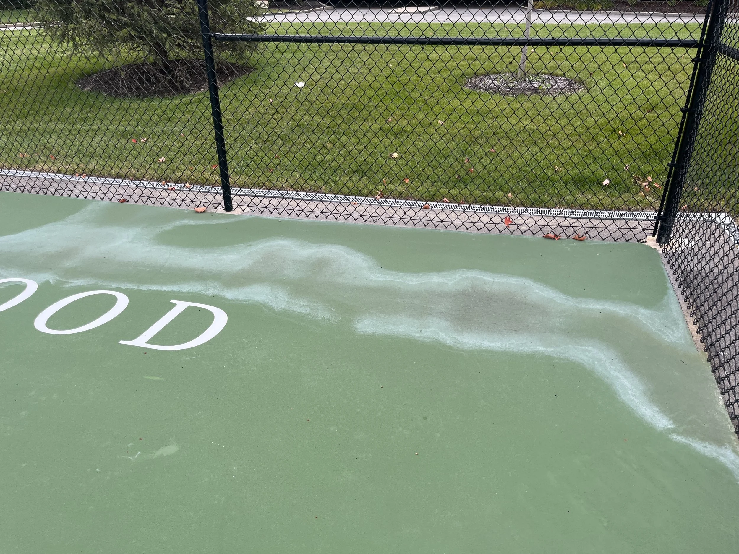 Cleaning courts prior to a new surface being applied.